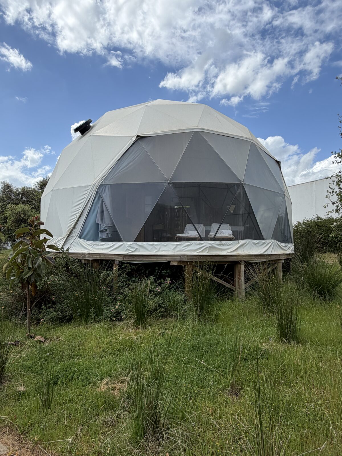 Als ik terugkom, staat de Skydome al voor mij klaar. Deze privé dome heeft een eigen sauna en jacuzzi en is voorzien van een volledig transparant raam. Er zijn weinig plekken waar je met zo’n uitzicht kunt relaxen. Het voelt bijna surrealistisch, alsof je in een sciencefictionwereld bent beland. Ik betrap mezelf op de gedachte: is dit echt?