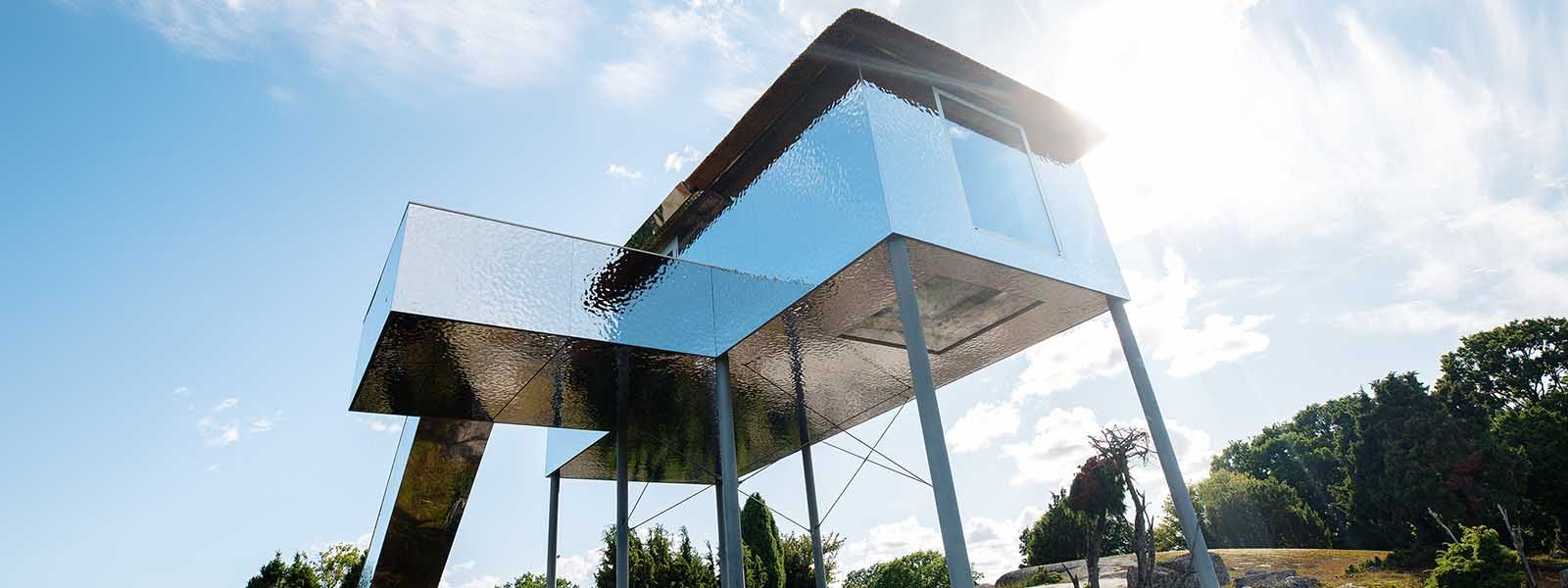 SynVillan is ontworpen door een van de meest gerenommeerde architecten van Zweden, Thomas Sandell, die vakmanschap en hightech liet samenkomen in de materiaalkeuze – roestvrij staal, glas en riet. En aangezien het bouwwerk op 3 meter hoogte rust, geven spiegelglanzende pilaren je het gevoel dat je zweeft.
